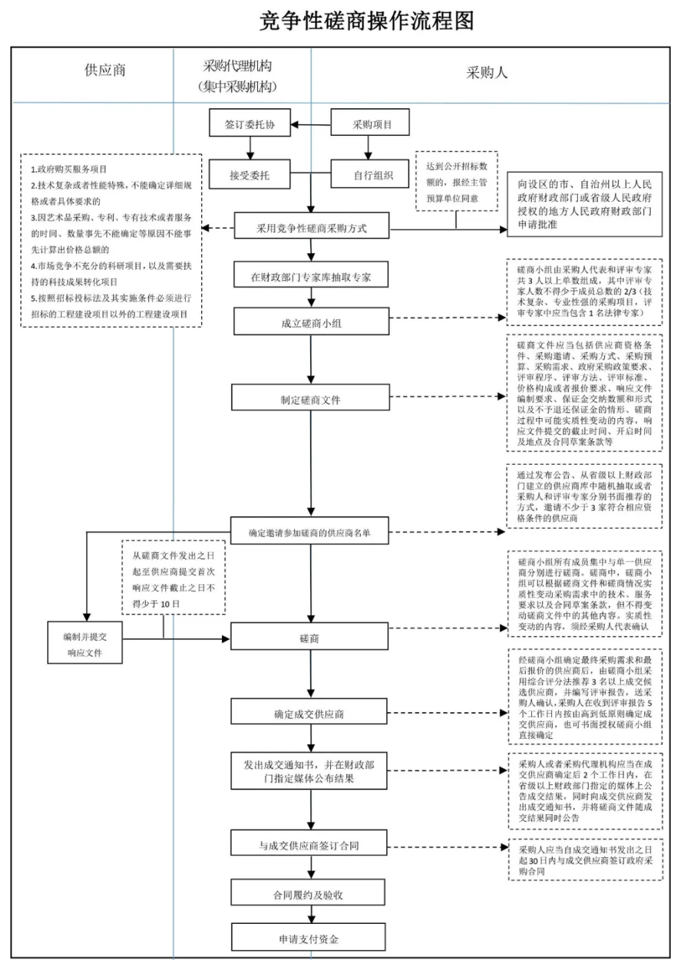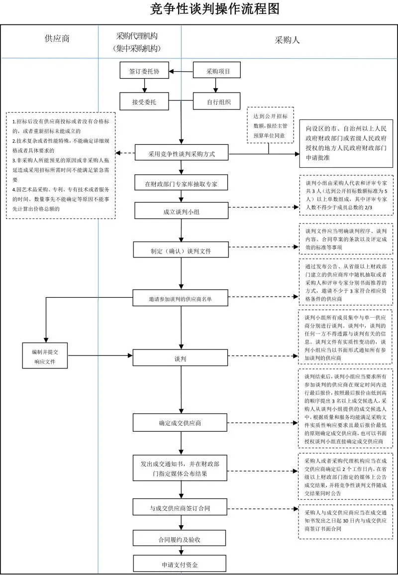 競(jìng)爭(zhēng)性磋商是指采購(gòu)方通過(guò)組建競(jìng)爭(zhēng)性磋商小組與符合條件的供應(yīng)商就采購(gòu)貨物、工程和服務(wù)事宜進(jìn)行磋商、供應(yīng)商按照磋商文件的要求提交響應(yīng)文件和報(bào)價(jià),采購(gòu)人從磋商小組評(píng)審后提出的候選供應(yīng)商名單中確定成交供應(yīng)商的采購(gòu)方式。簡(jiǎn)單理解:其實(shí)競(jìng)爭(zhēng)性磋商就是為了解決競(jìng)爭(zhēng)性談判最低價(jià)成交的問(wèn)題,可以理解為競(jìng)談和公開(kāi)招標(biāo)的結(jié)合。 競(jìng)爭(zhēng)性磋商與競(jìng)爭(zhēng)性談判除了時(shí)間節(jié)點(diǎn)不同外,最大的區(qū)別在于競(jìng)爭(zhēng)性磋商需要通過(guò)評(píng)分來(lái)確定成交候選人,而競(jìng)爭(zhēng)性談判無(wú)需評(píng)分,主要看價(jià)格。(1)政府購(gòu)買服務(wù)項(xiàng)目;(2)技術(shù)復(fù)雜或者性質(zhì)特殊,不能確定詳細(xì)規(guī)格或者具體要求的;(3)因藝術(shù)品采購(gòu)、專利、專有技術(shù)或者服務(wù)的時(shí)間、數(shù)量事先不能確定等原因不能事先計(jì)算出價(jià)格總額的;(4)市場(chǎng)競(jìng)爭(zhēng)不充分的科研項(xiàng)目,以及需要扶持的科技成果轉(zhuǎn)化項(xiàng)目;