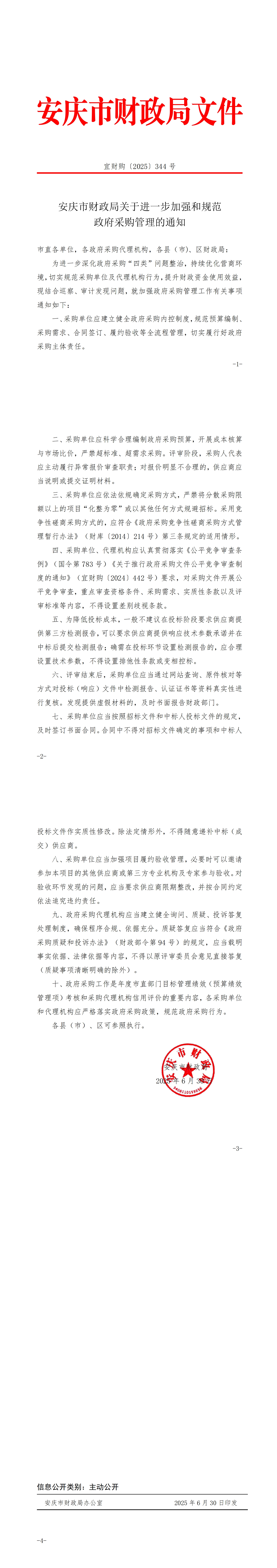 安慶市財(cái)政局關(guān)于進(jìn)一步加強(qiáng)和規(guī)范政府采購(gòu)管理的通知